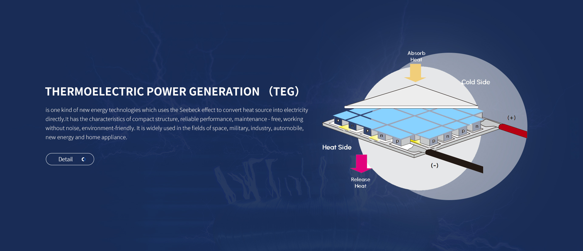 In the production process of waste incineration, boiler waste heat, steel smelting, ceramic kiln, it will produce a large amount of waste heat which can be collected then converted into current by seedbeck effect....